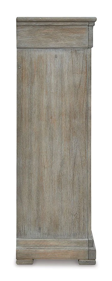 - OverviewPut a simple twist on your approachable sense of style with this classically charming Moreshire chest of drawers by Signature Design. A glazed bisque finish covers the wire-brushed textural surface, with natural wood undertones bringing additional dimension. Blackened iron-tone hardware embellishes the drawer fronts, infusing this chic piece with an air of traditional elegance.