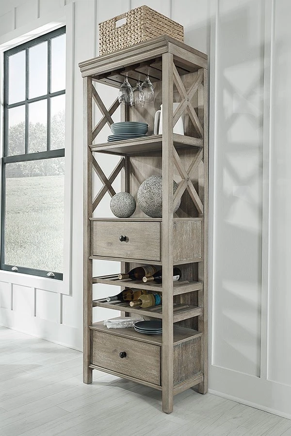 Built-in cubbies for organizing wine bottles or accessories