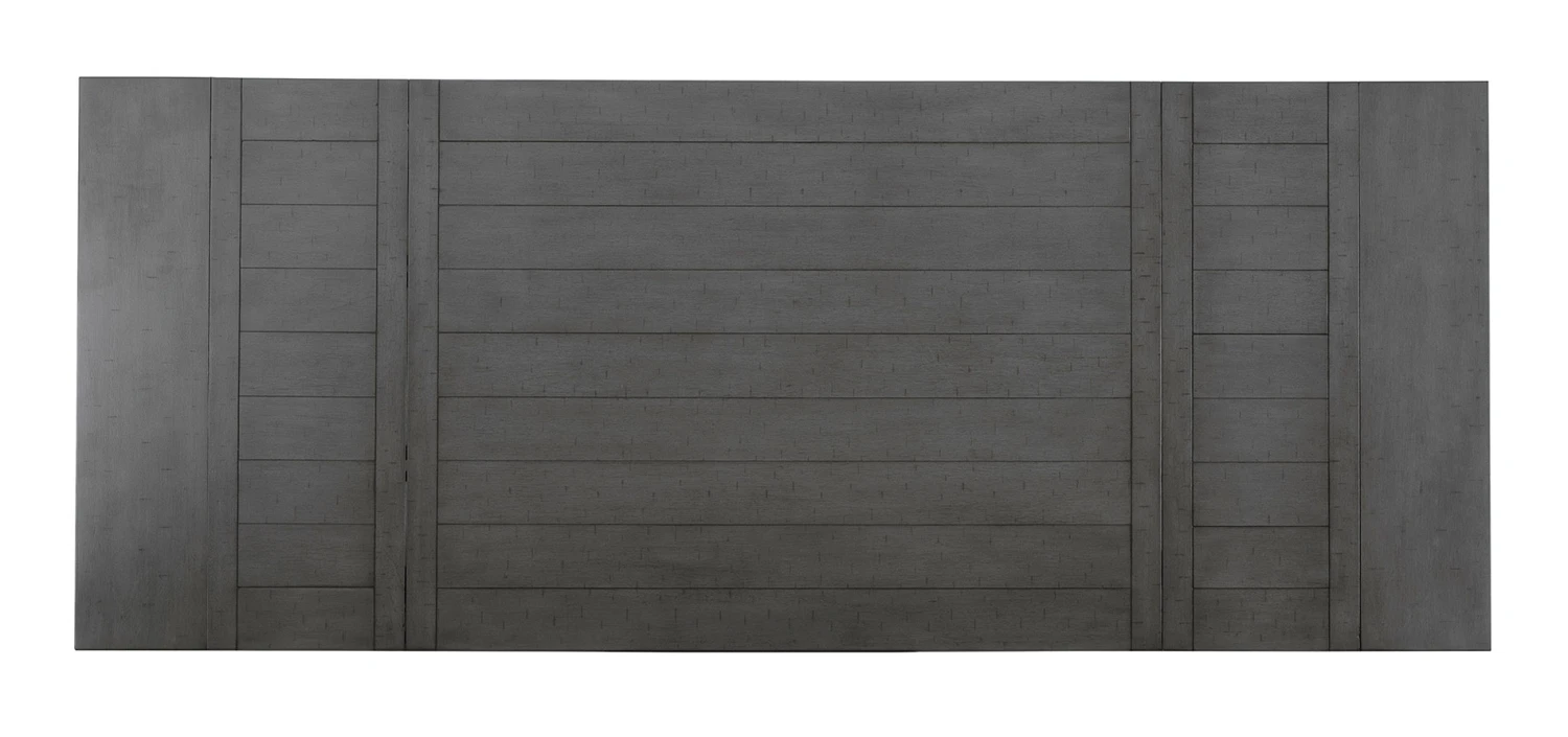 - OverviewGoing gray in the best possible way. This Myshanna dining room extension table wows with an utterly on-trend smoky gray finish and plank styling. Easy-on extension leaves attach at either end of the table for family dinners or impromptu entertaining. Just a touch of distressing helps it fit right in with your modern farmhouse decor.