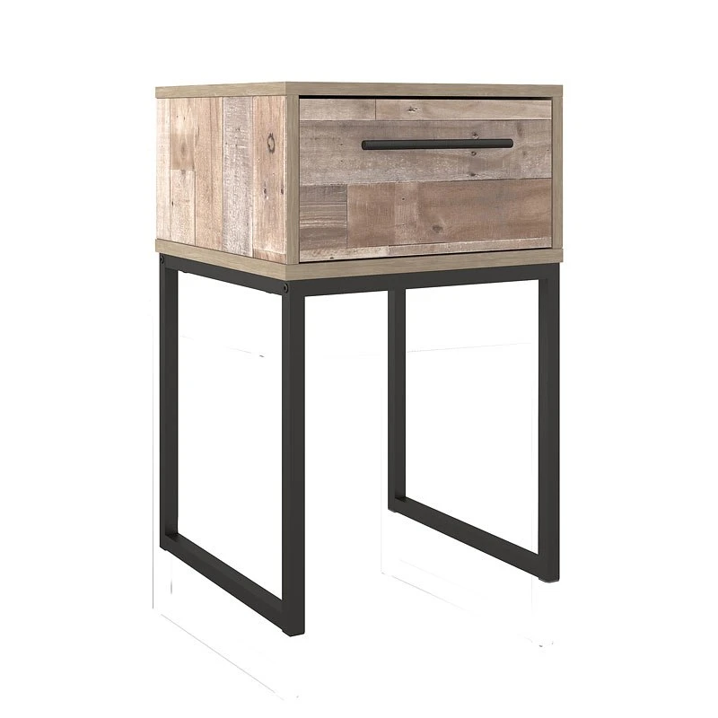- OverviewPart beach chic, part urban hip, this Neilsville nightstand by Signature Design is everything you dreamed of, at a comfortably cool price. The butcher block, whitewash finish over replicated pine grain lends a richly relaxed aesthetic that suits your sensibility. Dark pewter-tone drawer pull and sled legs add a high design element. What an easy-breezy choice for a naturally beautiful bedroom retreat.