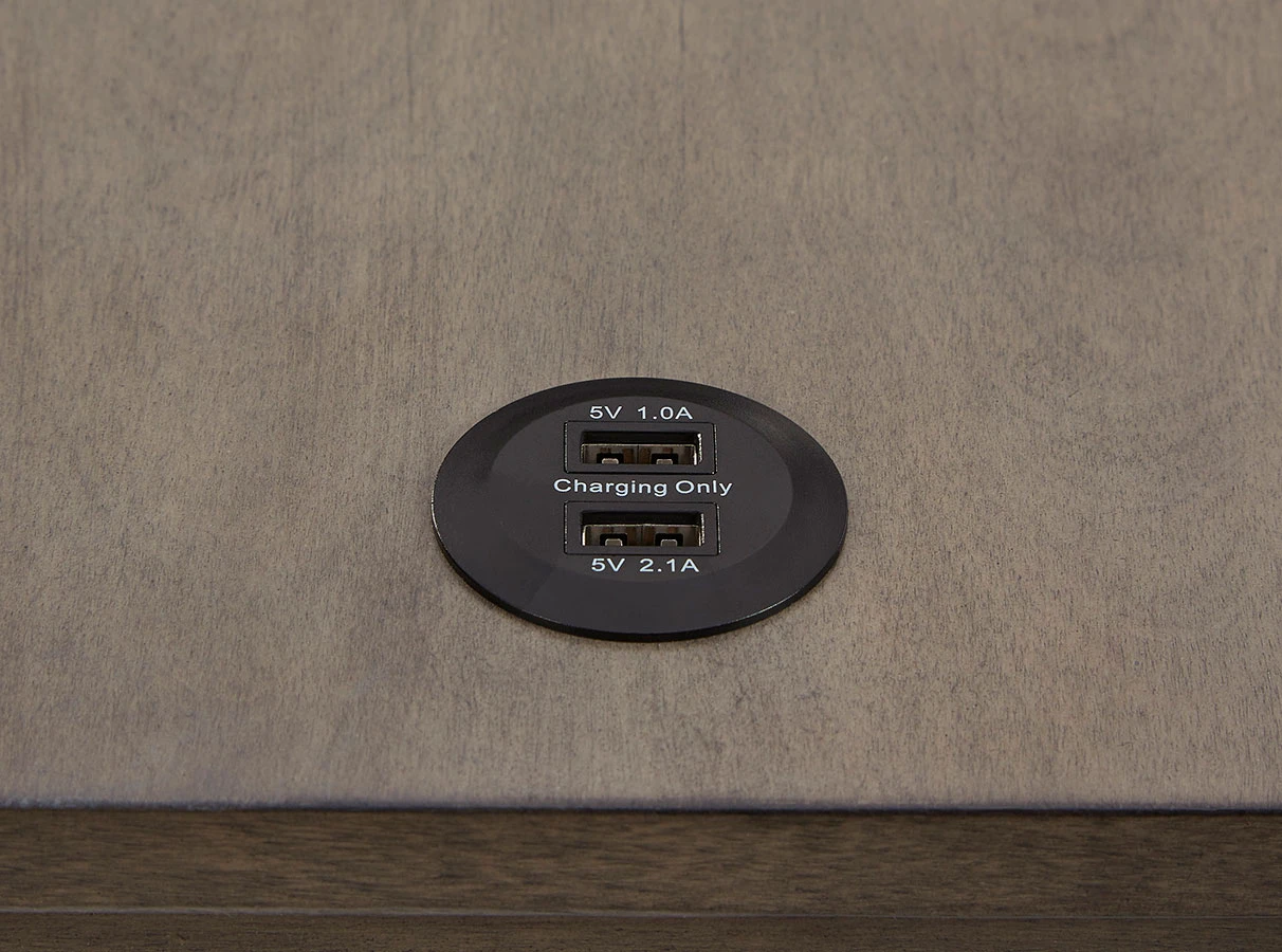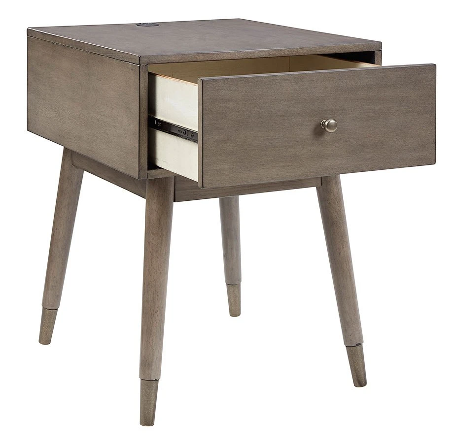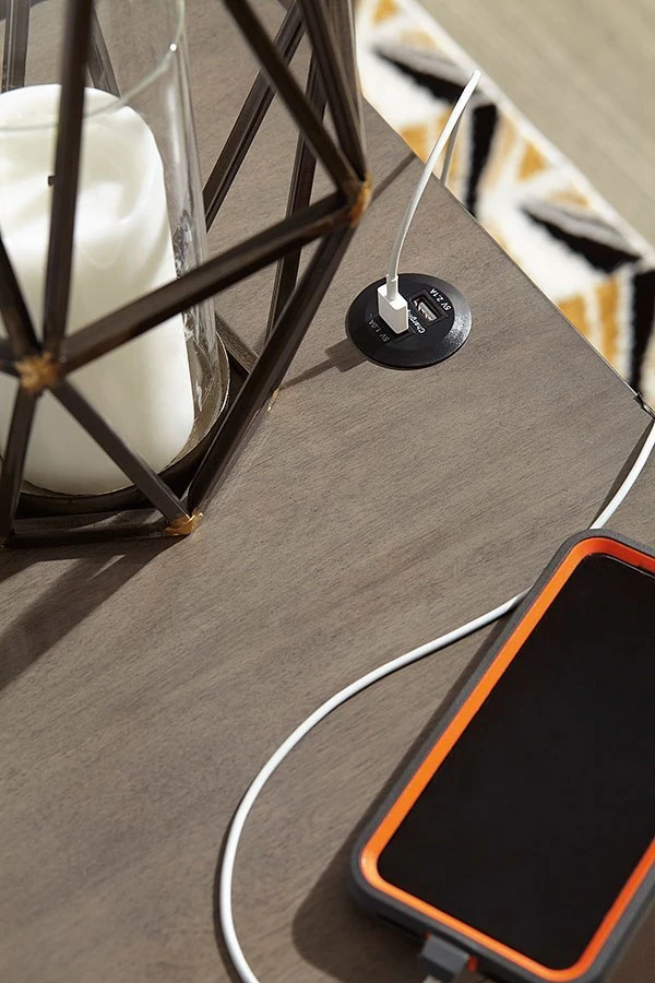- OverviewA study in seeming contradictions, this accent table is both practical and stylish. A storage drawer lets you keep necessary items in reach while out of sight, and two USB ports keep your devices powered up as you wind down. The clean lines and antique gray finish give this piece a high-design profile to elevate your space.