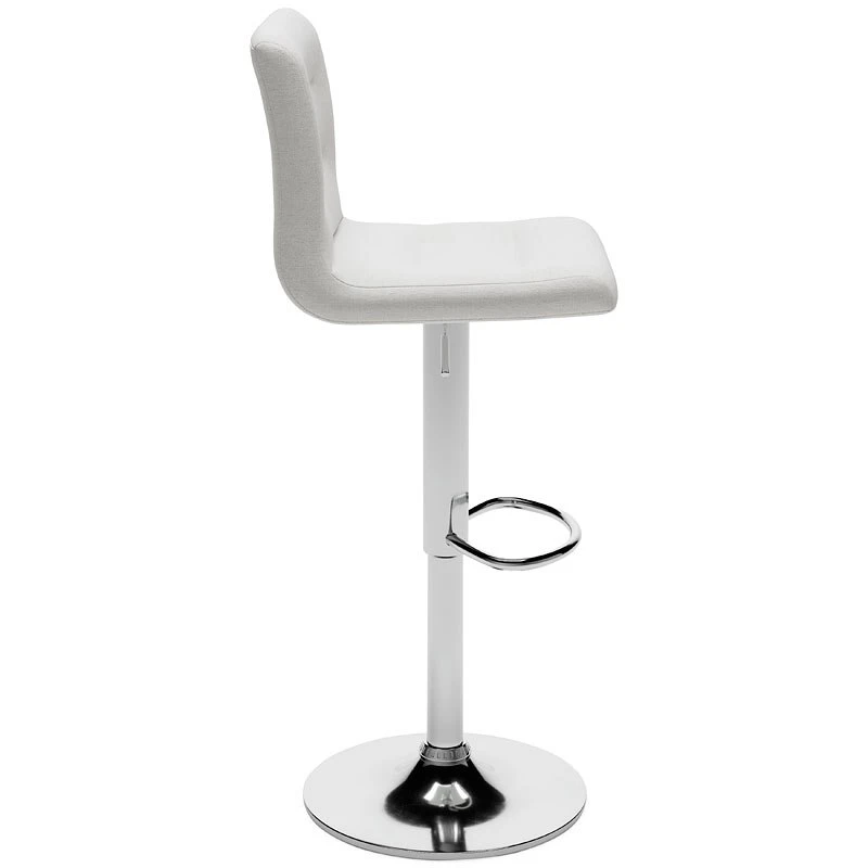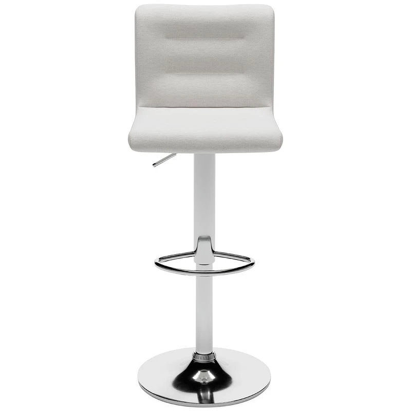- OverviewHave a taste for highly contemporary style? You’re sure to find this posh and polished Pollzen Barstool by Signature Design something to savor. Crafted with a sturdy steel frame beautified with a brilliant chrome-tone finish, this designer bar stool caters to your comfort with an adjustable height feature and swivel pedestal base. The cushioned seat and backrest are covered in a feel-good stone color upholstery with channeled details that enhance its modern appeal.