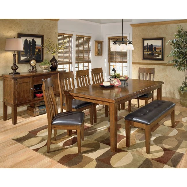 - OverviewWith the simple beauty of brushed brown finish and hardwood solids and acacia veneers, the casual and formal dining options of the Ralene Dining Room Set w/ Bench by Signature Design by Ashley Furniture are sure to welcome your guests as they enhance any home’s beauty.