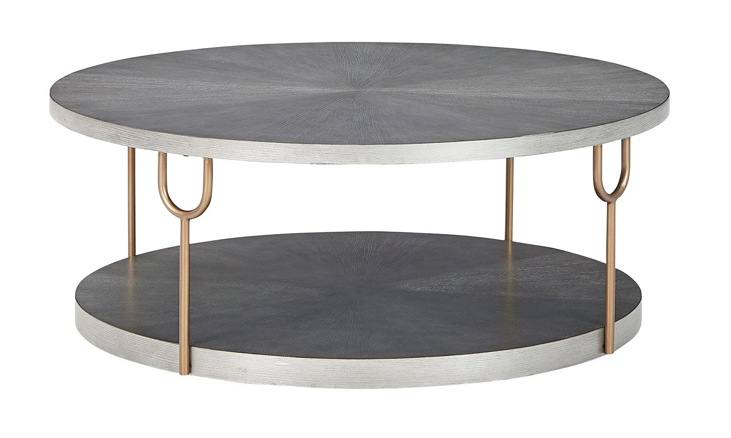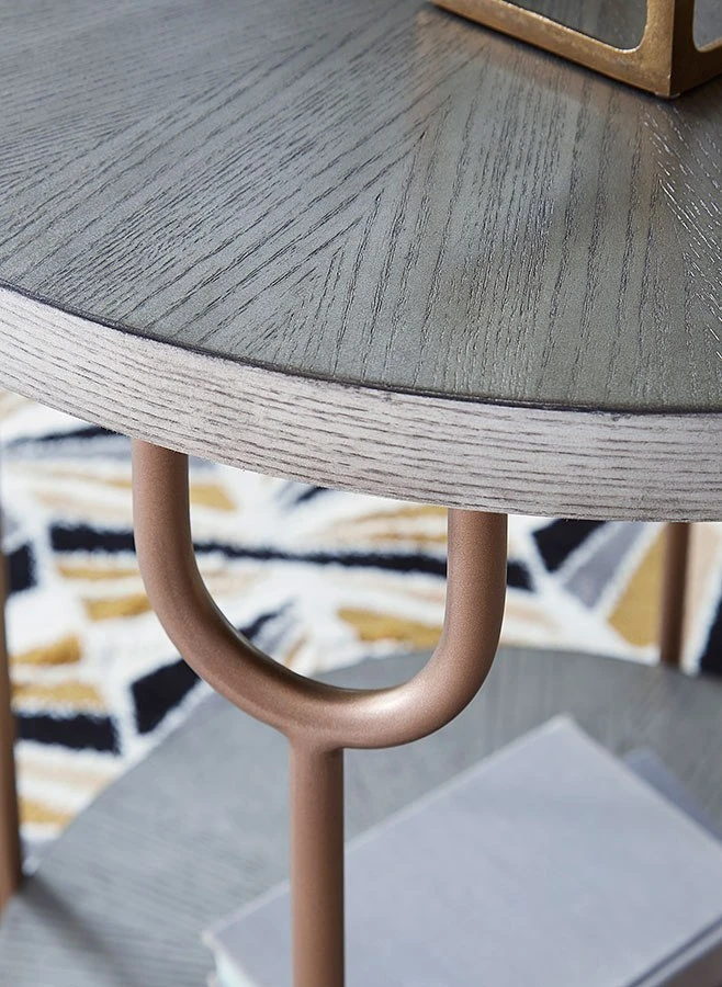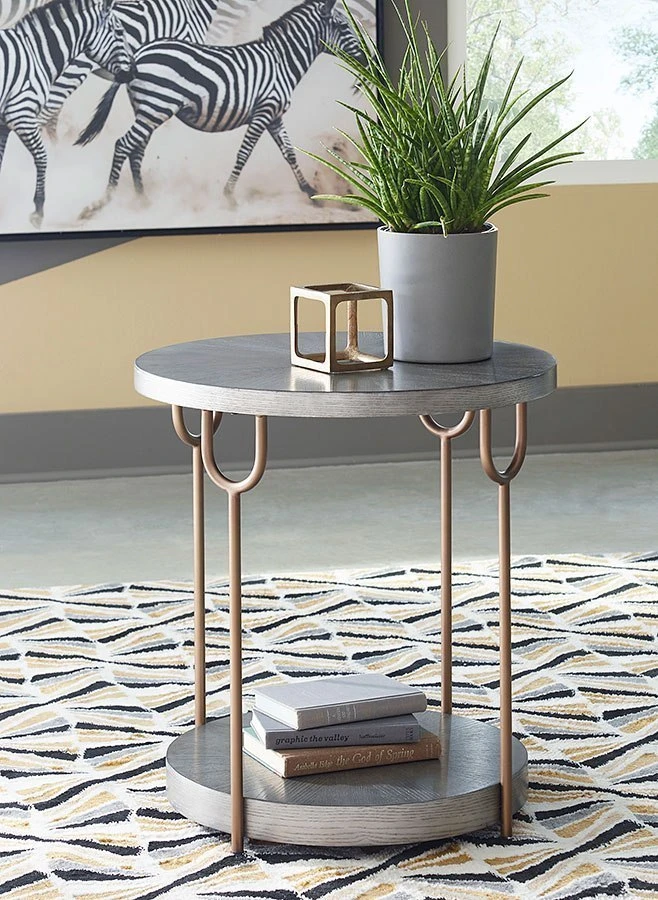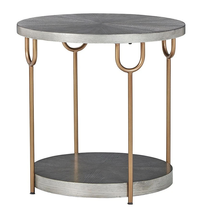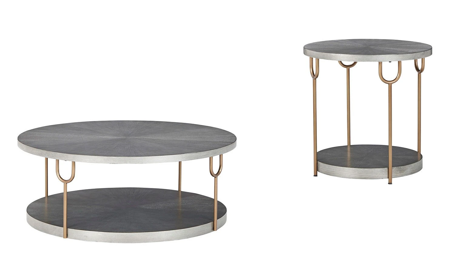 - OverviewThe Ranoka Occasional Table Collection by Signature Design features contemporary design and is made with Ash veneer in warm metallic silver color finish. Tubular metal legs in an antique gold color finish.