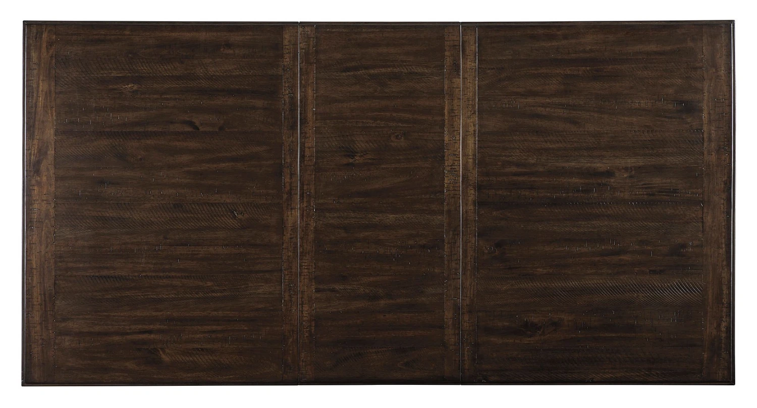 - OverviewMake gatherings memorable with an ever-trendy farmhouse table. The Rokane dining table by Signature Design keeps things cozy with its rough-sawn plank texturing and warm brown finish. Punctuated with a cross-buck trestle base and extension leaf to accommodate more guests, this urban farmhouse piece is sure to impress come mealtime.