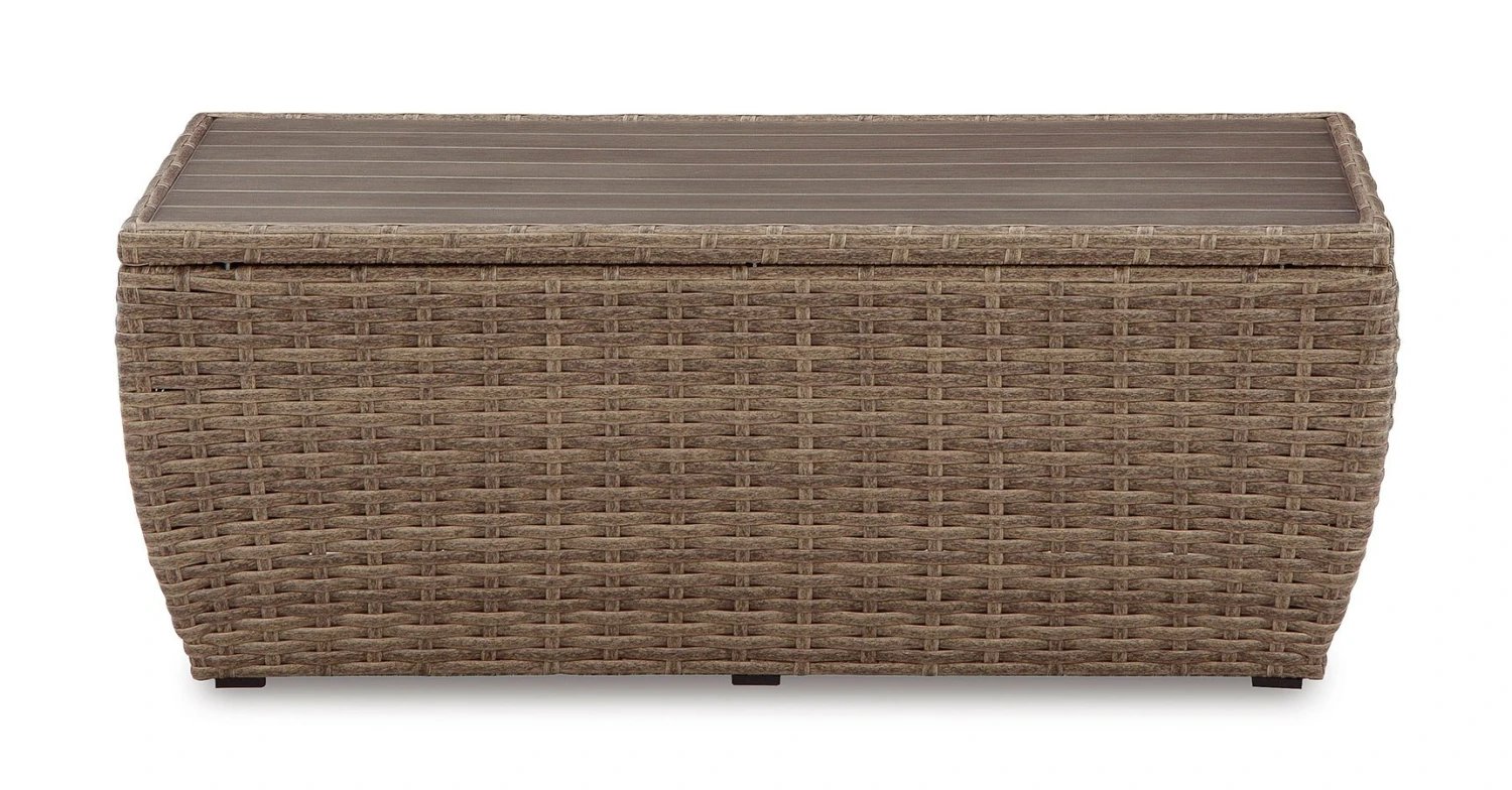 - OverviewIndulge in style that suits your easy-breezy sensibilities. This Sandy Bloom coffee table by Signature Design crafts a richly relaxed feel in your outdoor seating area. The driftwood hue of its durable resin wicker invites your casually cool aesthetic alfresco.