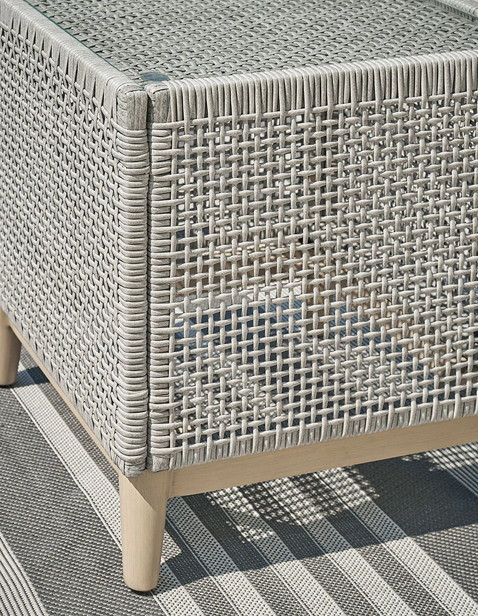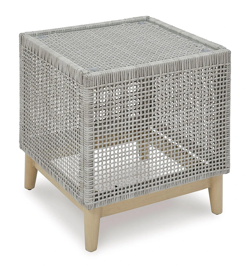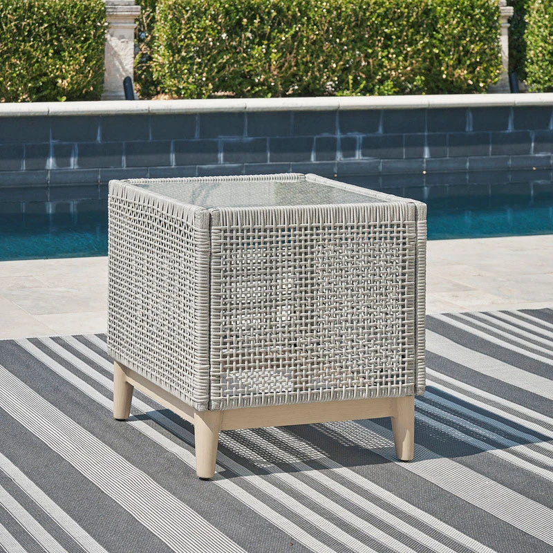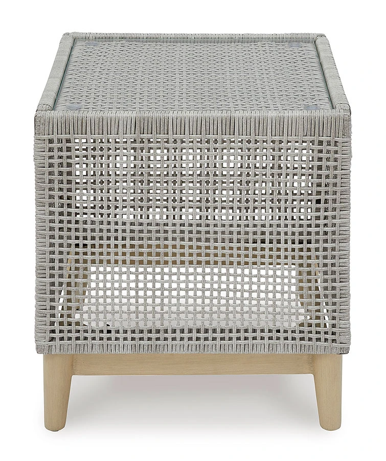 - OverviewThis Seton Creek Outdoor End Table by Signature Design invites your casual contemporary style outdoors. With its resin wicker in a chic neutral hue, it expertly marries refined design with durability. Breezy summer mornings and cold winter nights are made all the more enjoyable with a glass tabletop on hand to hold beverages, snacks and your latest poolside read.
