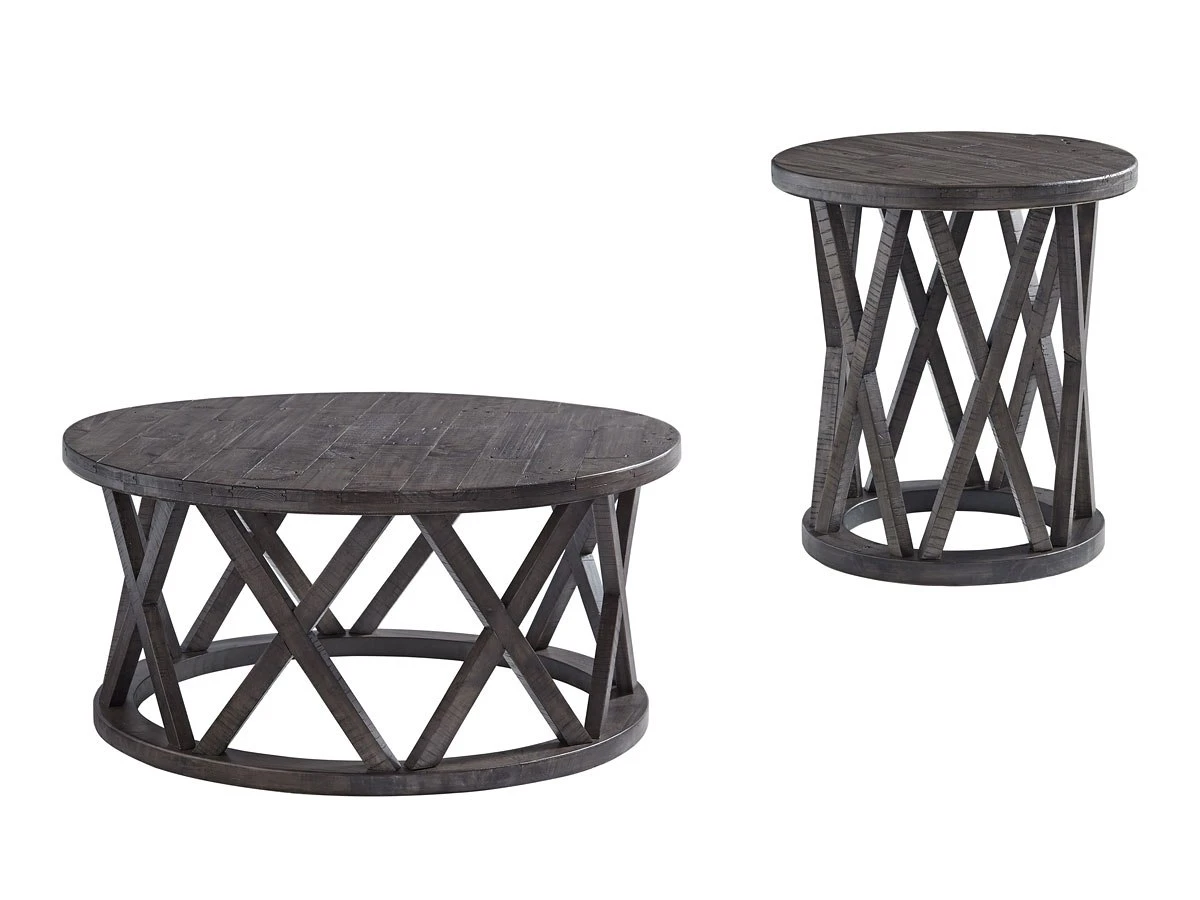 - OverviewThe Sharzane Occasional Table Collection by Signature Design is made with Pine solids, veneers and engineered board and features transitional rustic styling with repeated “X” motifs forming a unique styled base.