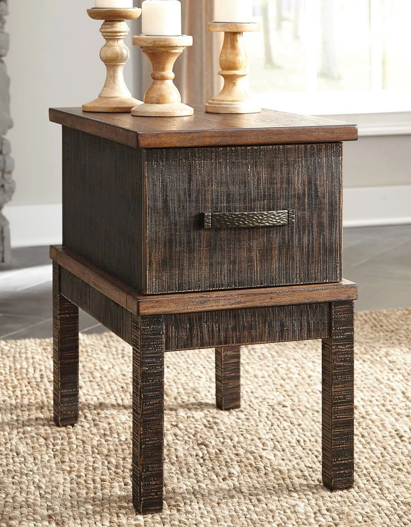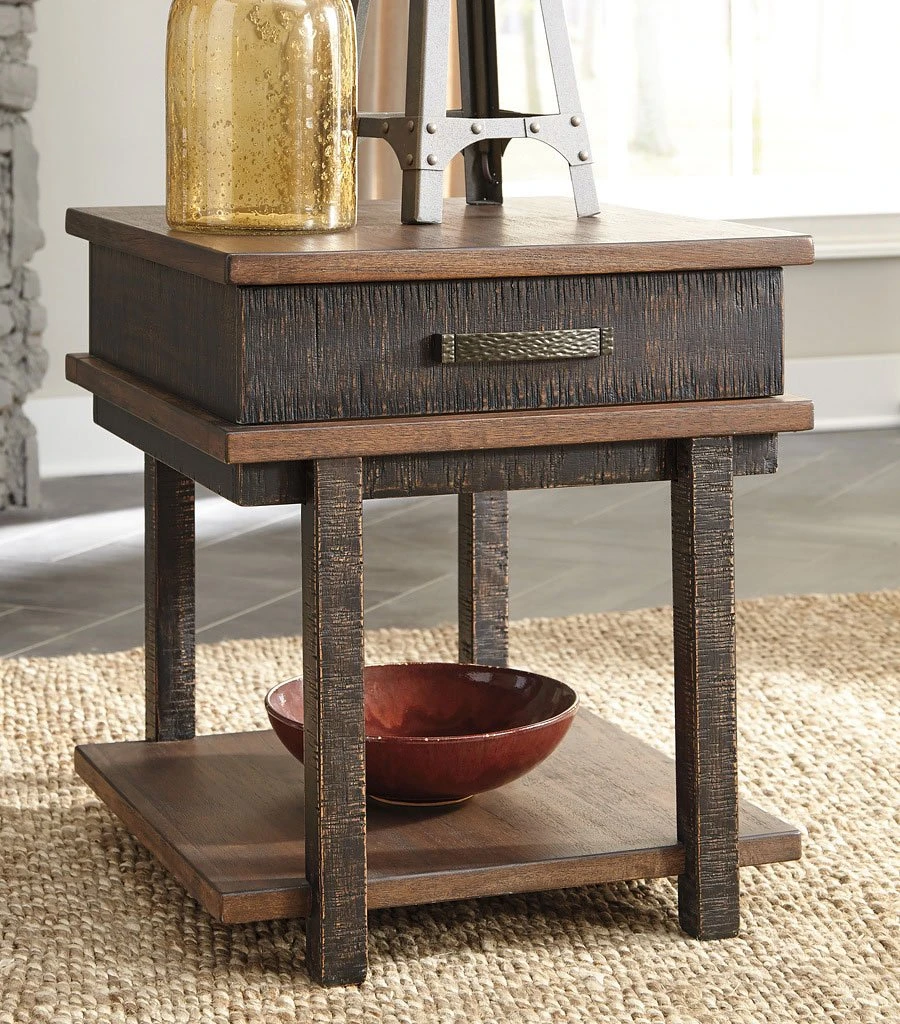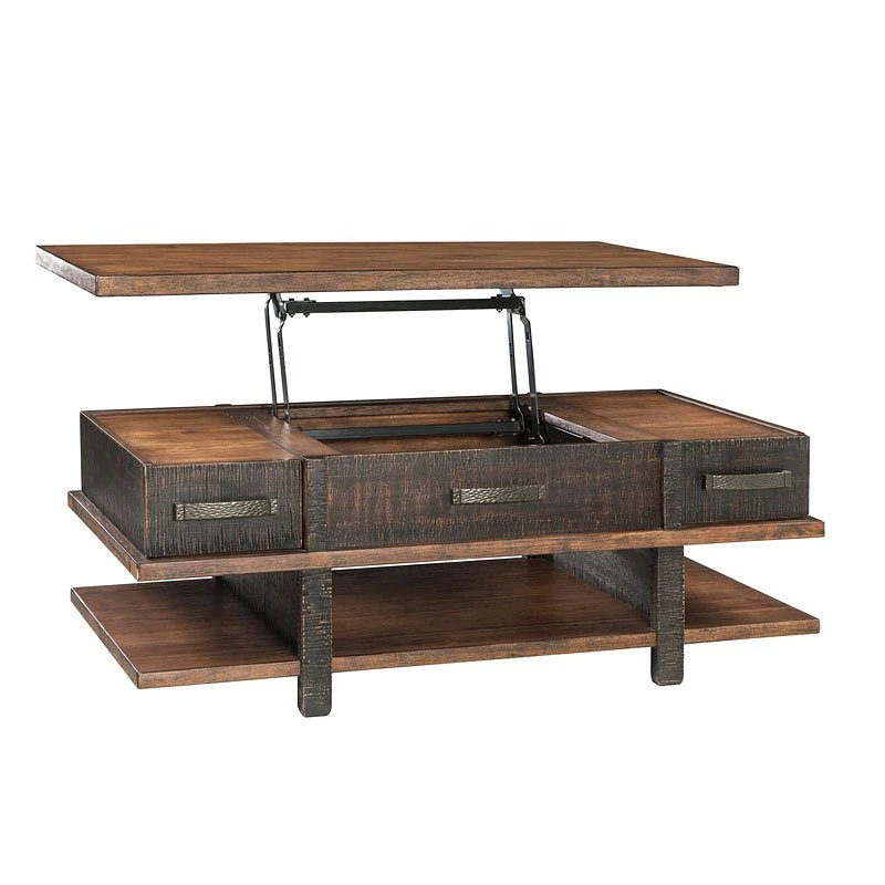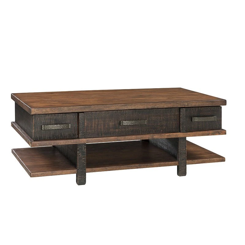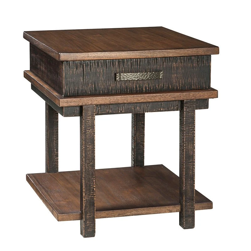 - OverviewEarthy, rustic character. Clean, contemporary lines. The best of both stack up beautifully in the Stanah Occasional Table Set by Signature Design. A simple, blocky profile is enriched with a two-tone finish with deep distressing for a decidedly different aesthetic.