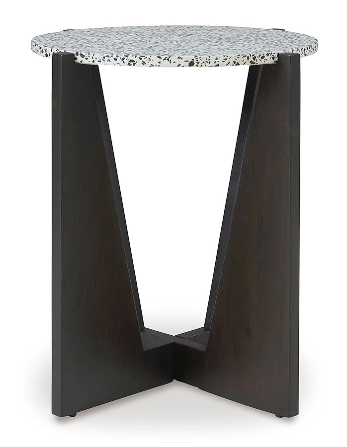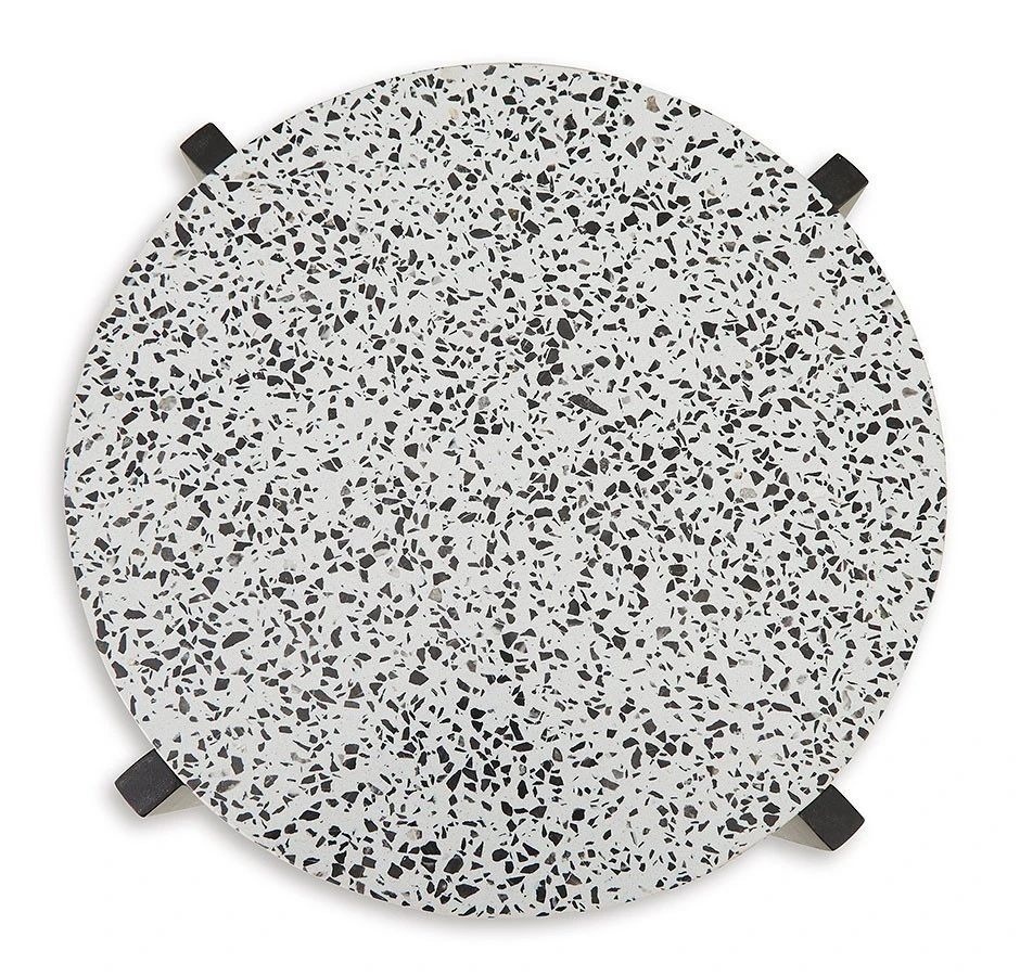 - OverviewGive your contemporary living room a fashionably functional upgrade. This Tellrich Accent Table by Signature Design is a stylish seat companion, keeping morning coffee and weekend cocktails within easy reach as you lounge. Whether your space is all neutral or bright with pops of color, the table’s black and white terrazzo top fits right in.
