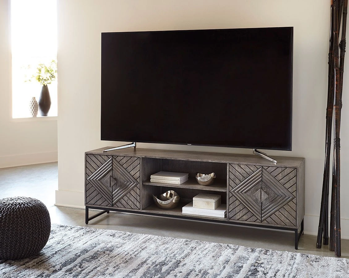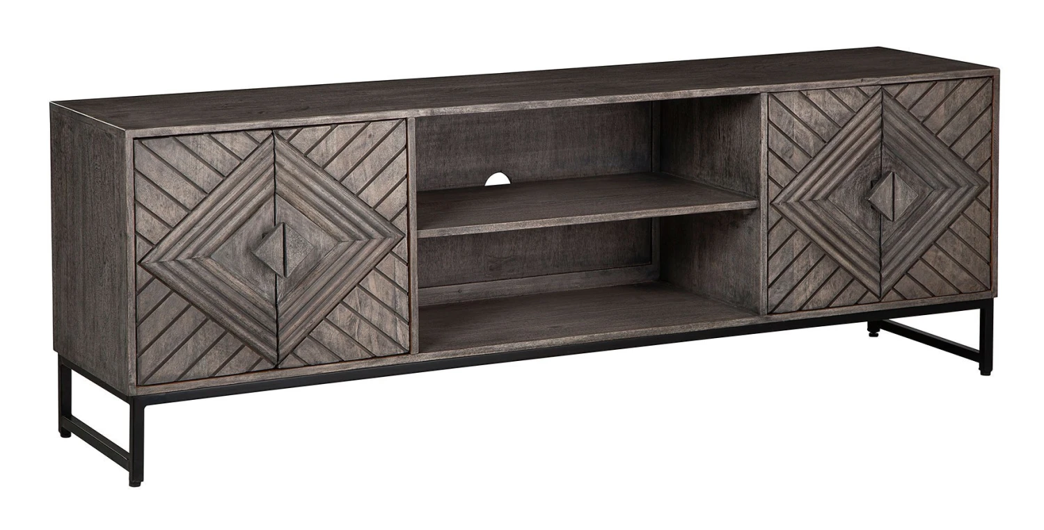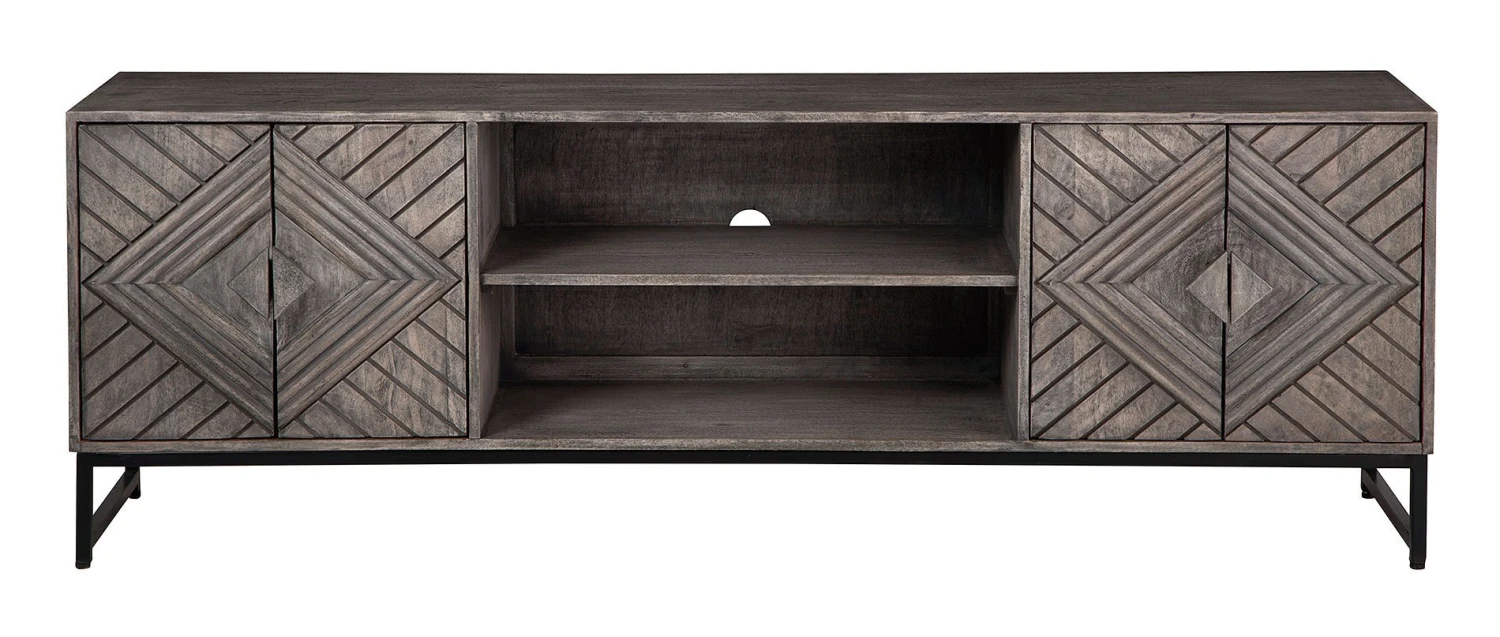 - OverviewFor admirers of understated vintage glamour, this Treybrook Accent Cabinet by Signature Design beautifully complements your desired aesthetic. The classic charm of a distressed gray finish meets chic metropolitan styling, with art deco-inspired door fronts and an industrial black metal base. A balanced blend of contemporary and casual design, this piece is the personification of laid-back luxury.