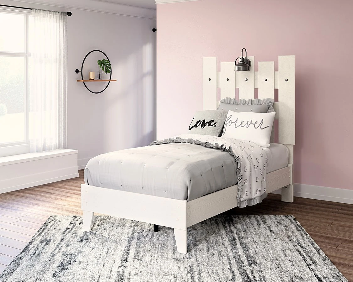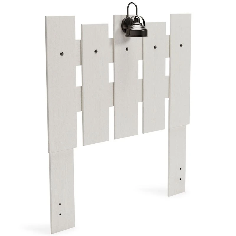 - OverviewFresh and inviting, this Vaibryn Youth Platform Bed by Signature Design is truly versatile. With a look reminiscent of a white picket fence, the crisp white painted finish with a subtle replicated wood grain brings life to your room. The headboard also features a decorative sconce light in an antiqued nickel-tone finish. With no additional foundation or box spring needed, this bed is a lively addition that will brighten your space in a snap.