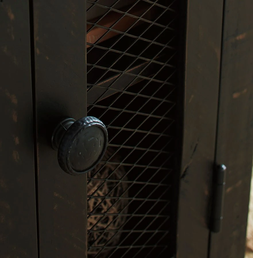Tops are finished in a light brown color and the bases finished in a rustic vintage black