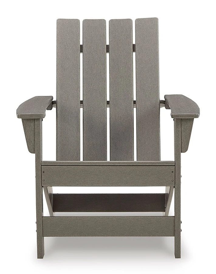 - OverviewIt’s the dawn of a new day for gray. Embrace the style trend with this Visola Adirondack chair by Signature Design. Crafted of HDPE material that combines the exceptional durability and weather resistance you need with the “wood look” you love, this timeless chair takes al fresco living to a whole new level. Slatted styling naturally sheds rainwater.