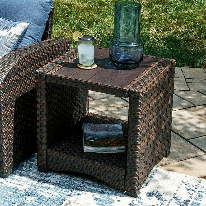 - OverviewClearly for those with exceptionally good taste, this Windglow Outdoor End Table by Signature Design is the perfect addition to any outdoor setting. Its all-weather resin wicker and aluminum frame offer years of beauty. Designed for easy maintenance, the table adds style and functionality to your patio space.