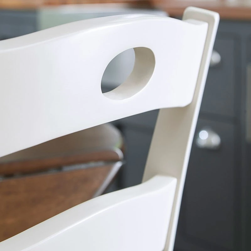 Updated cottage styling, chair has pierced ladder back design