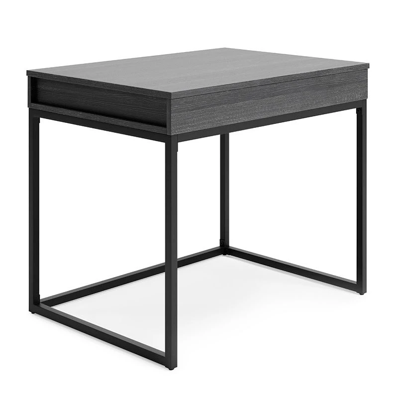 - OverviewElevate your home office with this simply sensational Yarlow Lift Top Desk by Signature Design. Pairing a blackened wood look with a black metal base for modern appeal, this minimalistic desk is dressed to impress in a no-muss, no-fuss way.